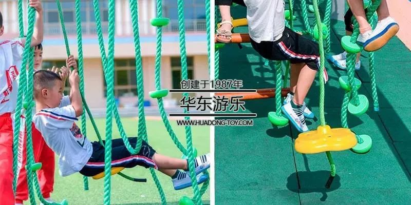 人猿泰山式藤条攀爬,蜘蛛侠式的来回穿梭于整个丛林是每个孩子童年的梦想,由于考虑孩子的自身体力,小朋友的安全保护意识,我们在爬绳上增加了圆盘,让小朋友在攀爬的过程中可以有很好的抓力以及在攀爬过程中可以得到适当的休息。