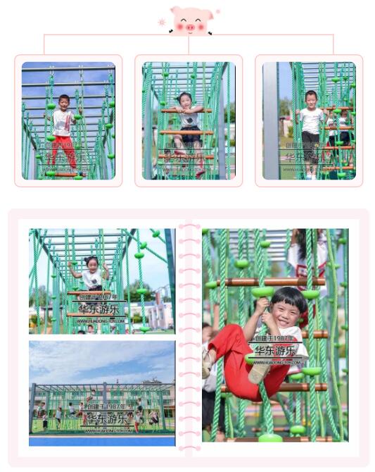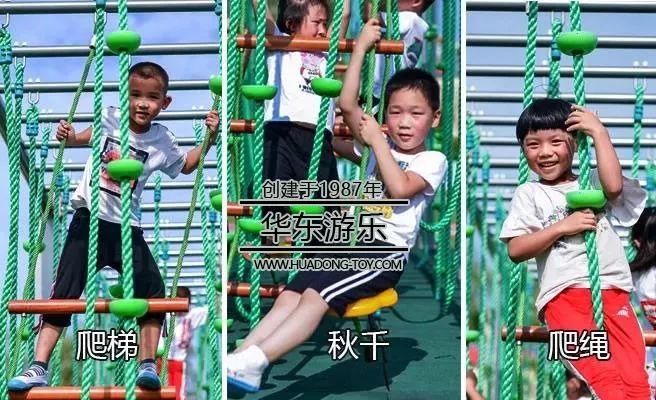 丛林拓展游乐设备是集爬绳、葫芦盘爬、秋千绳、木头爬、吊盘秋千、腰鼓爬绳、吊环、吊杆、网座秋千、钻圈爬等功能为一体的综合性游乐设备,能够满足现有幼儿园大部分的游乐、拓展、教学任务,是作为幼儿园配套设施不可缺少的一部分。