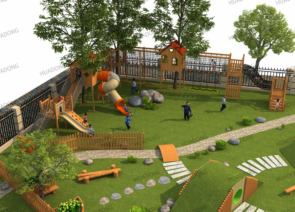 木质拓展设施采用天然木材打造,设计注重安全与挑战并重。通过悬挂桥、攀爬网、平衡木等多样化的障碍元素,旨在提升参与者的体能、平衡感及团队协作能力,同时享受亲近自然、挑战自我的乐趣。