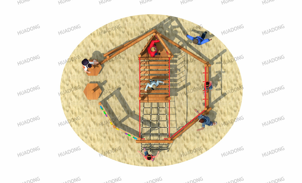 木质拓展设施采用天然木材打造,设计注重安全与挑战并重。通过悬挂桥、攀爬网、平衡木等多样化的障碍元素,旨在提升参与者的体能、平衡感及团队协作能力,同时享受亲近自然、挑战自我的乐趣。