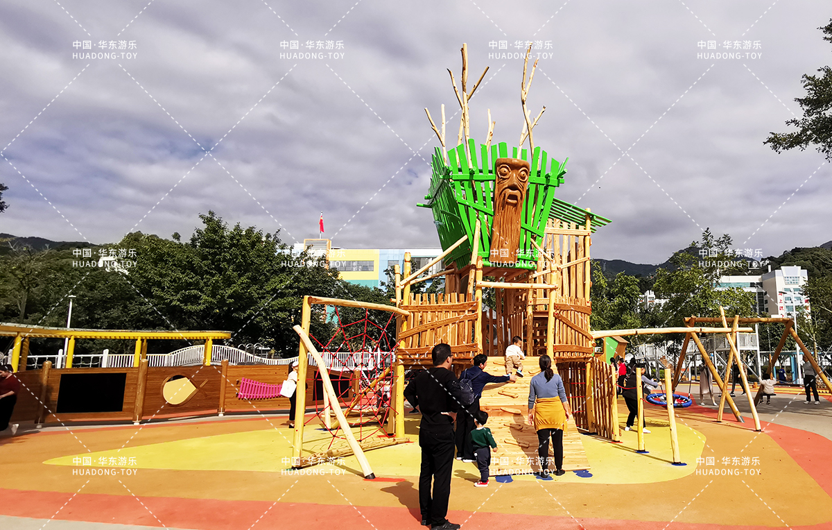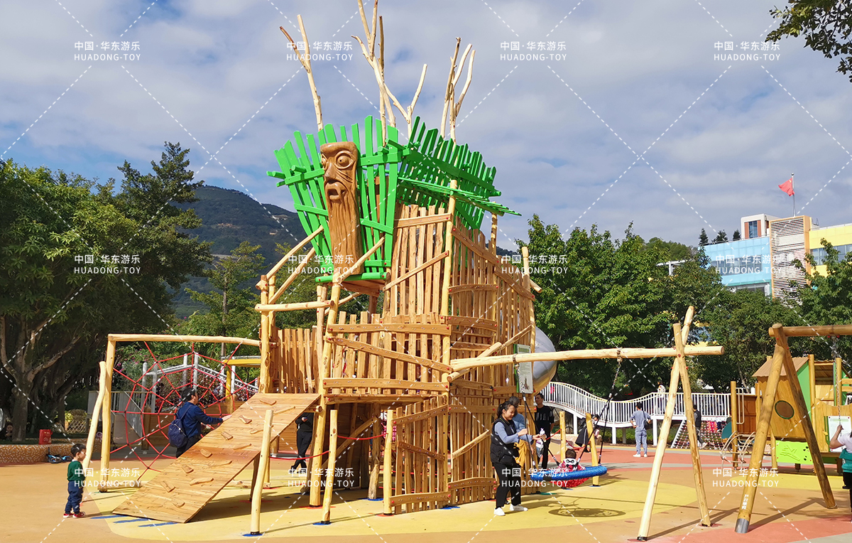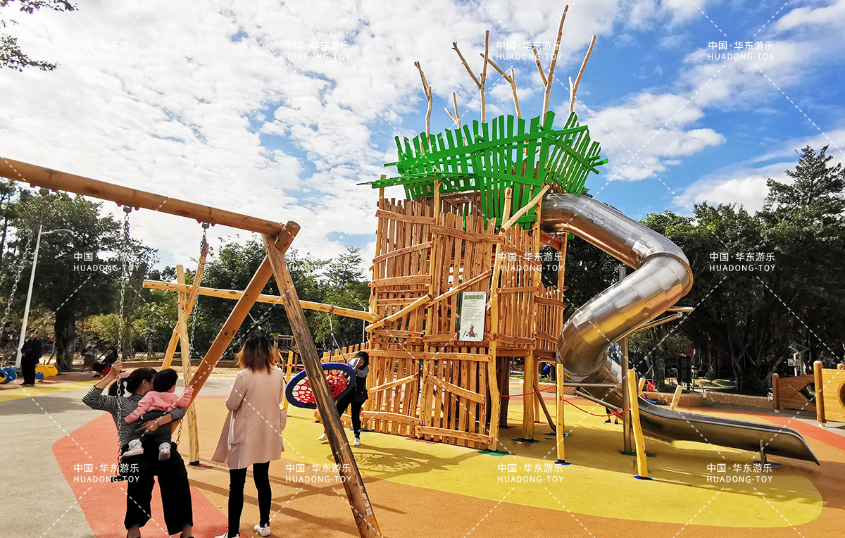 • 福州儿童主题公园项目是一个集生活、休闲、娱乐、遛娃为一体的综合性游乐场,该游乐场采用木质非标定制游乐设备,具备爬网、不锈钢滑梯、万能健身、秋千组合等功能,独特的木屋风格让人体验到大自然的神器与魅力。