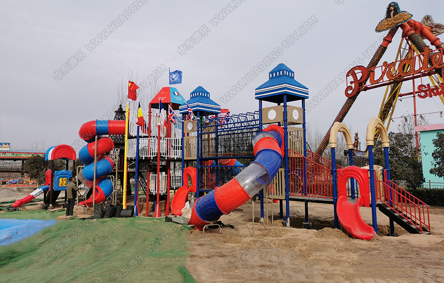 河南省三门峡市星河乐园是一个综合像游乐园,该项目采用的是leyu乐鱼游乐生产的大型欧韩风格的组合滑梯,具有攀爬、爬网、滑梯、钻洞、网绳、吊桥等功能,设计完美、质量优越,深受小朋友们的喜爱。
