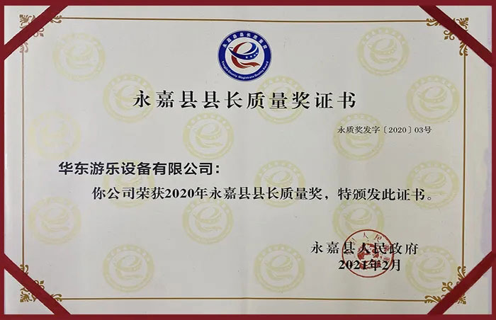 2020年,对广大企业来说注定是困难的一年,作为游乐设备行业的先锋企业,leyu乐鱼游乐紧紧围绕永嘉县总体经济发展为目标任务,主动适应经济发展新常态,积极应对2020年疫情期间的“复工复产”等工作,取得了显著成绩,被永嘉县人民政府评为“2020年度巨龙企业”和“县长质量奖”的荣誉。