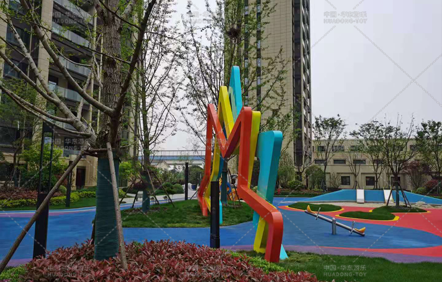 祥生云山新语项目采用的是以星星形状的门型为原型而设计的游乐场地,该场地放置了跷跷板、微地形,攀爬墙等游乐设备。