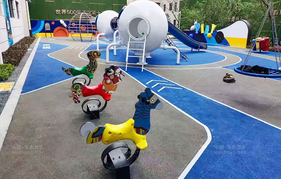 • 纵横交错的蚂蚁巢穴,小小的蚂蚁在它们的世界自由攀爬,碧桂园珑泊湾项目采用蚂蚁的世界为设计主题,生动形象的刻画了蚂蚁世界的奇妙,整个游乐场设计了网绳钻洞、网绳攀爬、不锈钢滑梯、秋千组合、传声筒、音乐版、摇摇车等游乐设备,小朋友仿佛一个个小蚂蚁在巢穴里尽情的爬来爬去。