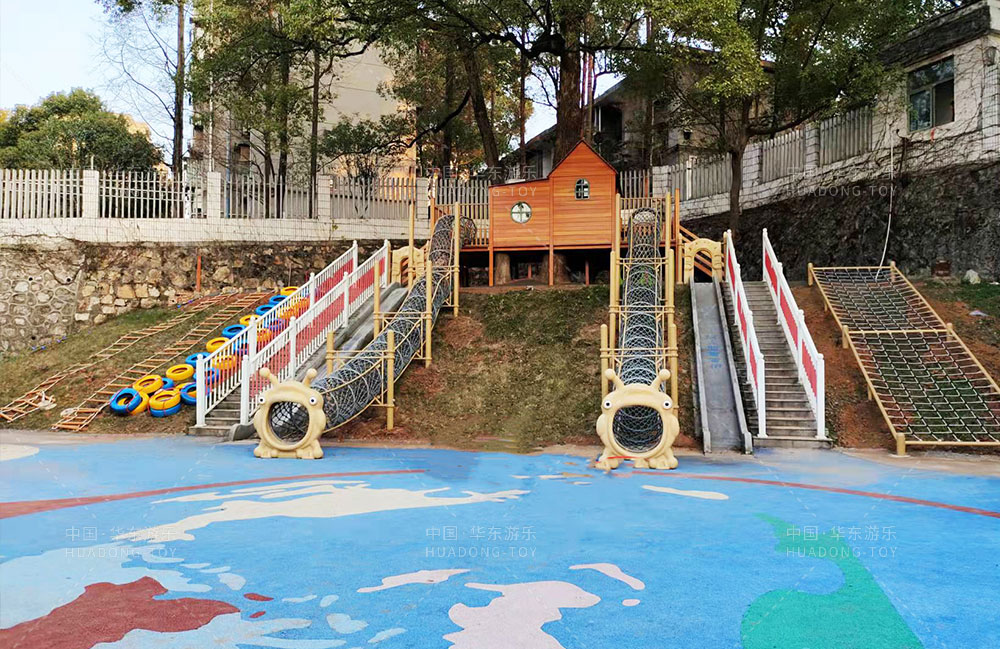 湖南省株洲市株机幼儿园是一家专业的学前教育培训机构,此次项目采用的是leyu乐鱼游乐自主研发的木制非标游乐项目,整个项目设置的有木制游戏小屋,攀爬墙、攀网钻洞、轮胎攀爬等游乐设备。
