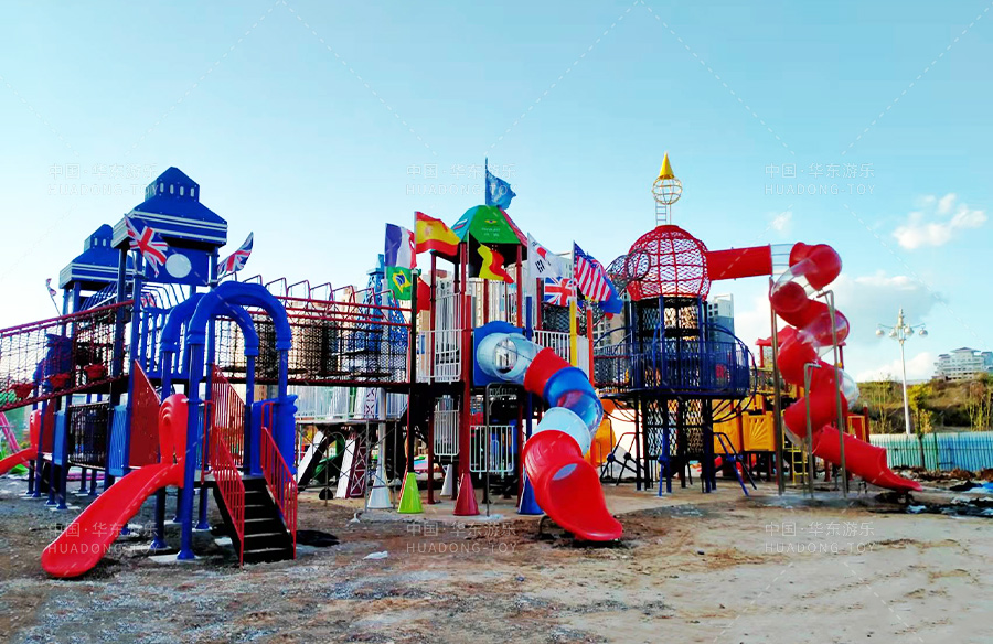 该游乐园选用的是leyu乐鱼游乐自主生产和研发的跨国系列大型组合滑梯,该滑梯具有爬网、攀爬墙、旋转滑梯、空中爬网、U型网桥、平衡吊环等功能,是一款风格多样、功能齐全的游乐设备,深受小朋友们的喜爱。