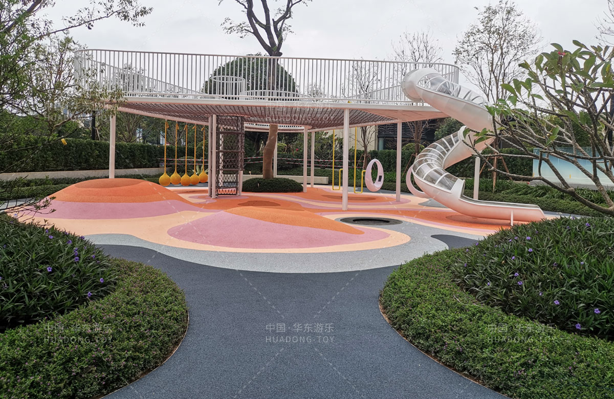 南宁市华润地产未来城市是一个高端的生活小区,该项目选用的是leyu乐鱼游乐自主研发和设计的非标定制游乐设备,整个项目分别设计了小朋友喜欢的大型滑梯、月亮秋千、传声筒、钻洞、爬网、荡球等功能,为生活在该小区的人民提供了一个很好的休闲娱乐的场所。