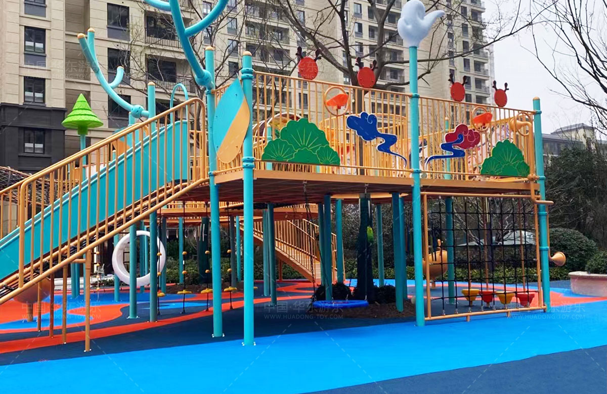 建投东方名府源著儿童游乐项目是leyu乐鱼游乐生产的非标定制的主题性游乐设备,整个项目采用以森林麋鹿为设计主题,分别设计了攀爬网、钻洞、不锈钢滑梯、旋转椅、传声筒、秋千、脚踏平衡杆、攀爬梯等功能,为小朋友的健康成长提供了一个很好的游玩场所。