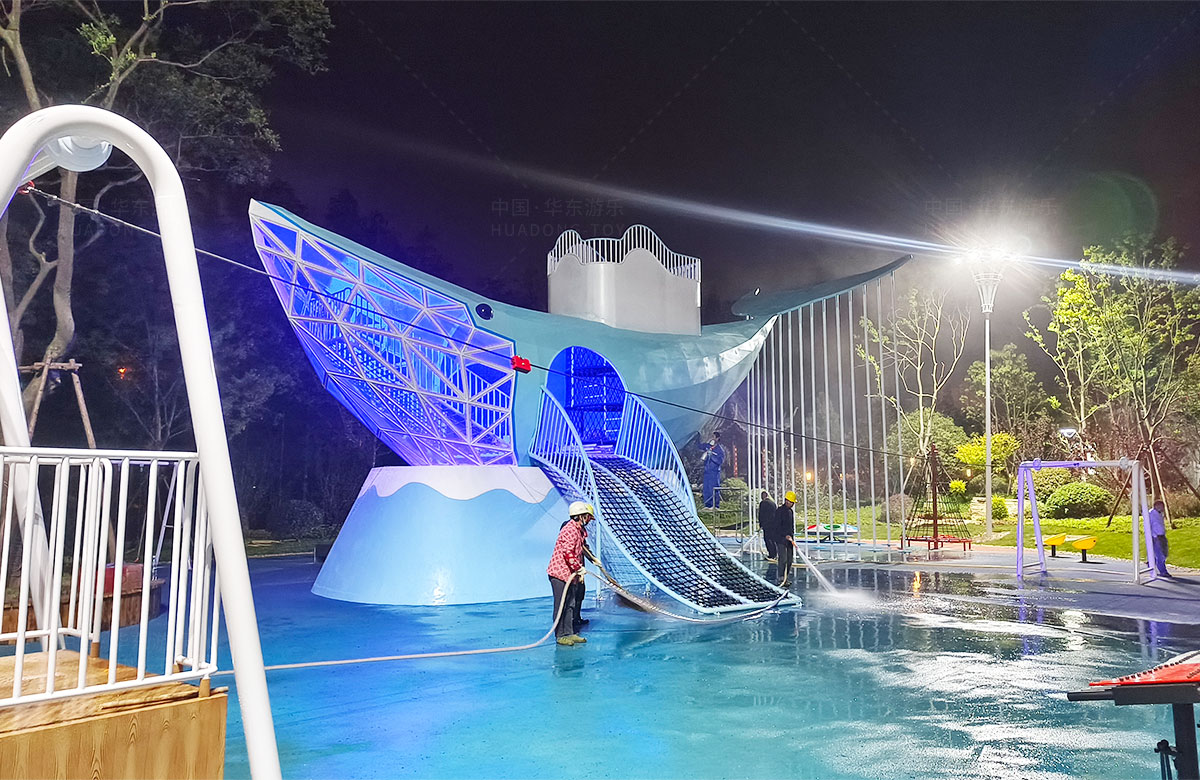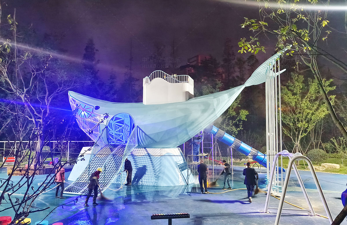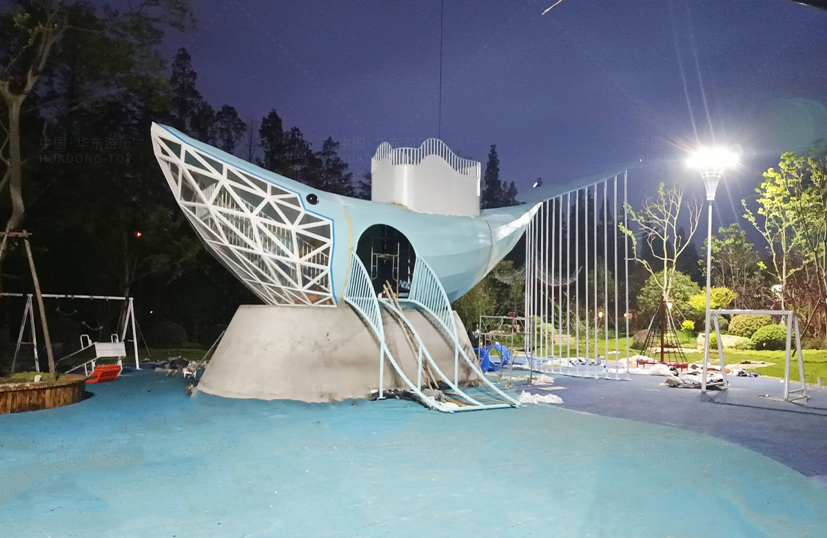 该项目选用的是leyu乐鱼游乐自主研发和生产的鲸鱼主题系列的非标定制游乐设备,设计了具有攀爬网、钻洞、空中滑索、打击乐器、旋转椅等功能设备,卡通的造型,完善的功能深受小朋友们的喜爱。
