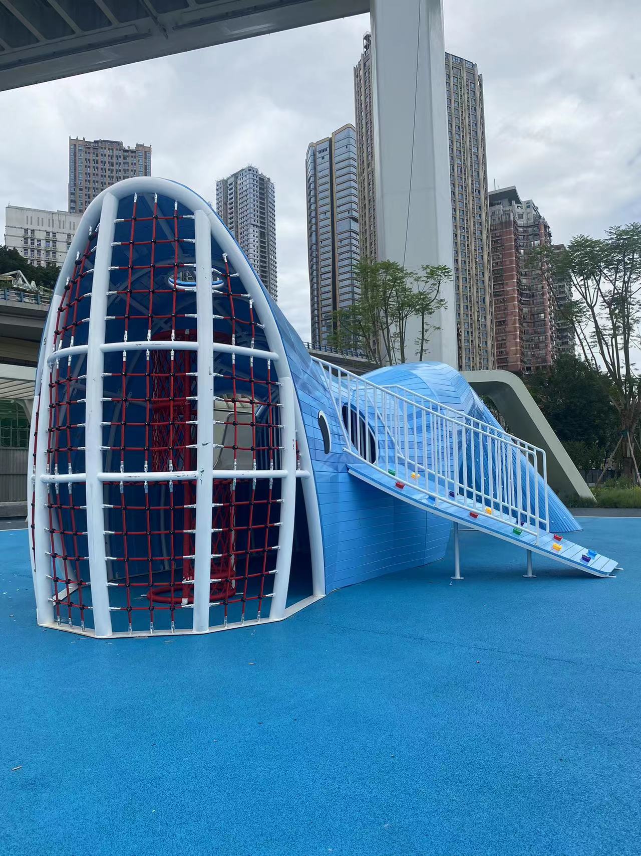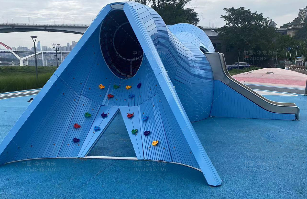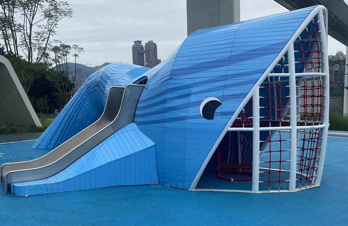重庆市珊瑚公园是一个公益性的,专门为该区域游玩的人群提供休闲、娱乐的场所,此次选用的游乐设备是leyu乐鱼游乐自助研发和设计的以大鲨鱼为主的非标定制设备,具备了攀爬网、攀爬墙、钻洞、不锈钢滑梯等功能。
