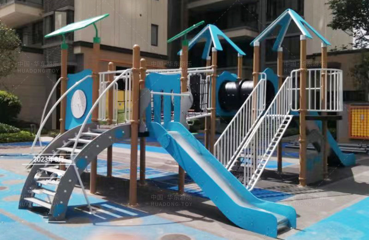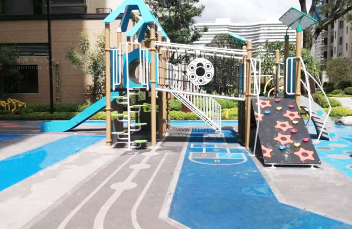 该项目选用的是leyu乐鱼游乐自主研发和设计的PE板系列组合滑梯,该滑梯是一款具备了攀爬墙、攀爬网、攀爬梯、空中网桥、不锈钢滑梯等功能为一体的综合性游乐设备,除此之外还设置了小朋友喜欢的传声筒、攀爬墙、翻翻乐和成年健身器等设备,不仅丰富人们的休闲生活,也为该小区增加了更多的生机与活力。