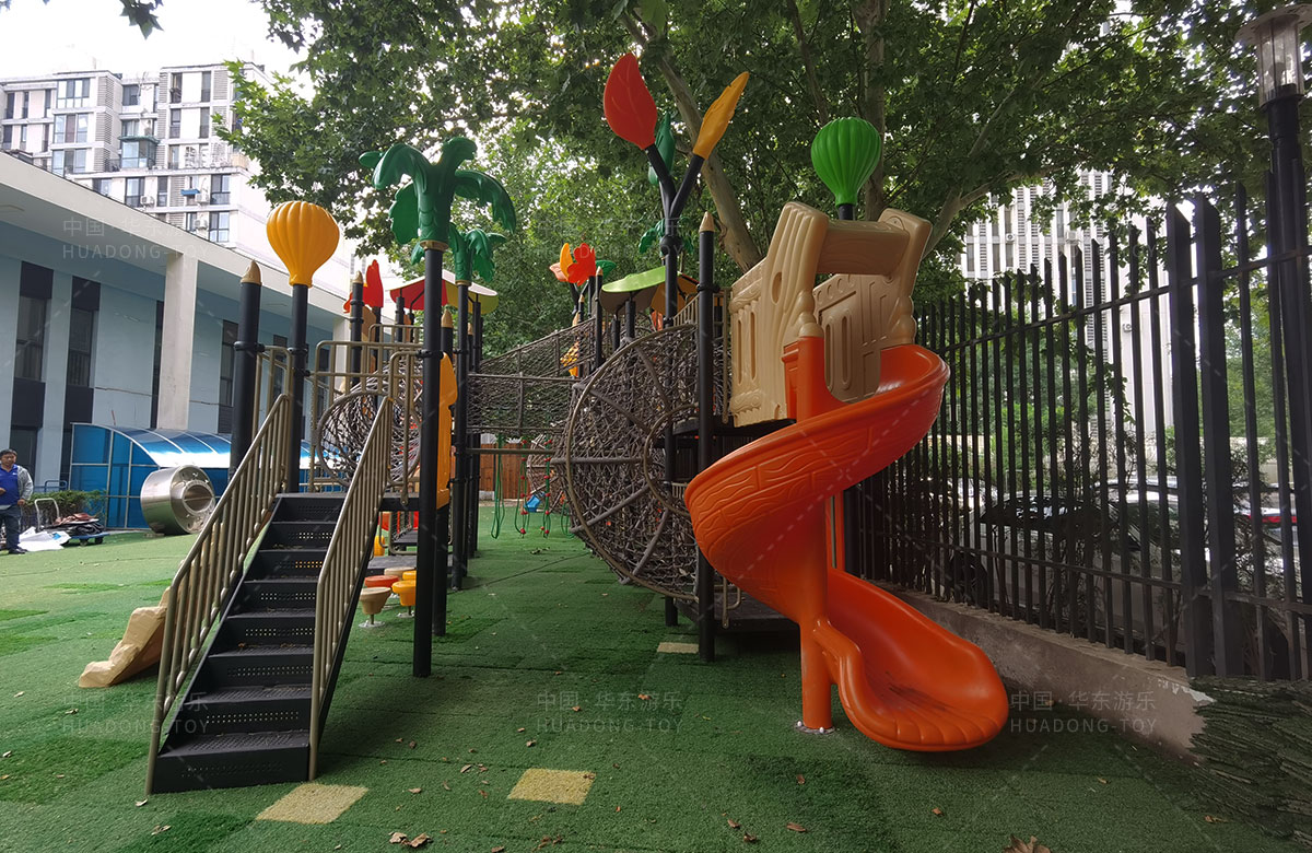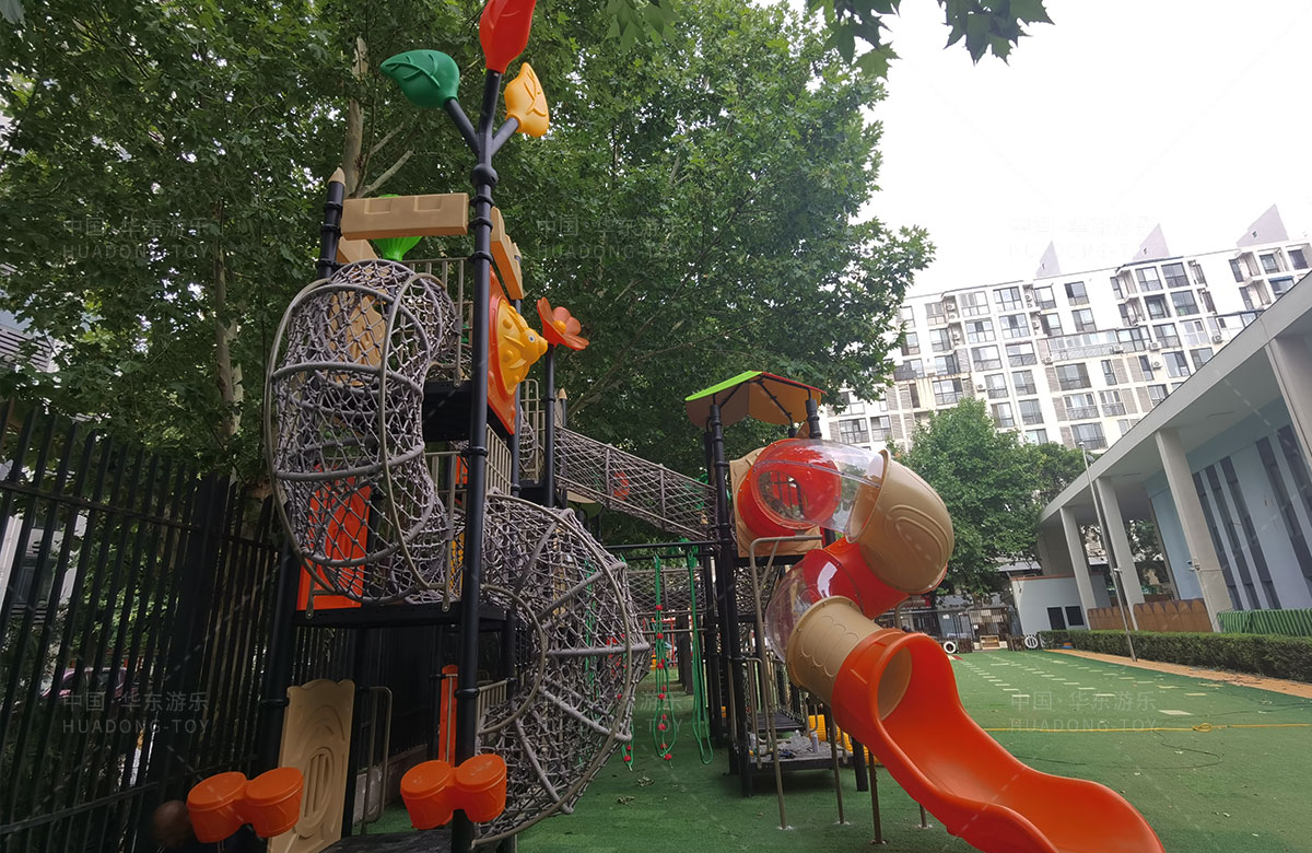 北京市朝阳区管庄忠德幼儿园选用的是leyu乐鱼游乐自主研发和设计的大自然系列组合滑梯,该滑梯是一款具备了攀爬网、钻洞、滑梯、丛林拓展、拍拍鼓、攀爬墙、固定踏踏车、平衡桩等功能为一体的综合性 游乐设备,能够很好的锻炼小朋友的全面发展。