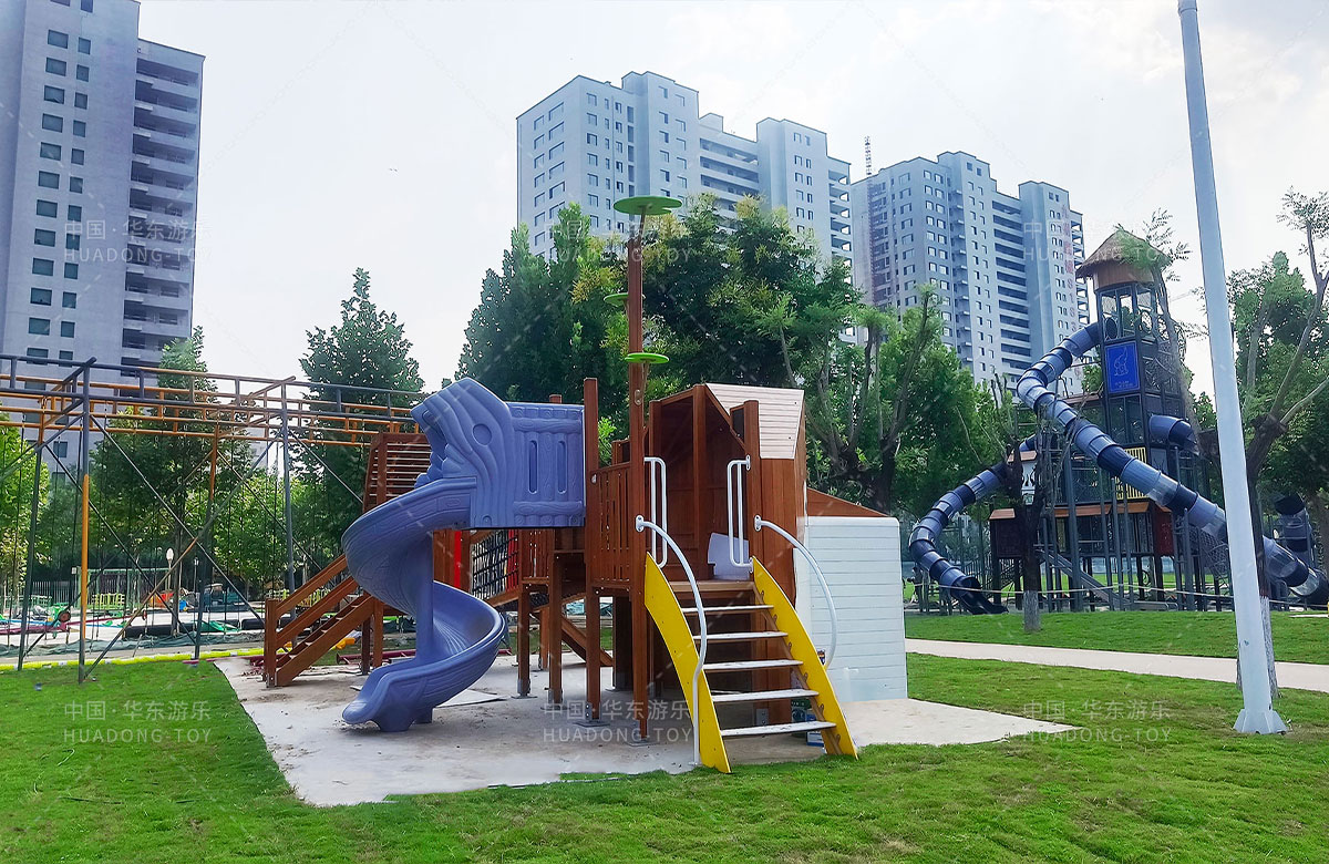 • 山东省元气丛林亲子乐园是一个综合性儿童游乐公园,公园内设置了小朋友喜欢的儿童摇摇乐、儿童跷跷板、旋转座椅,大型非标定制的组合滑梯、中国龙木质滑梯等游乐设备,具备了攀爬网、攀爬墙、钻洞、滑梯等多种功能,为孩子们的玩耍提供了很好的场地。