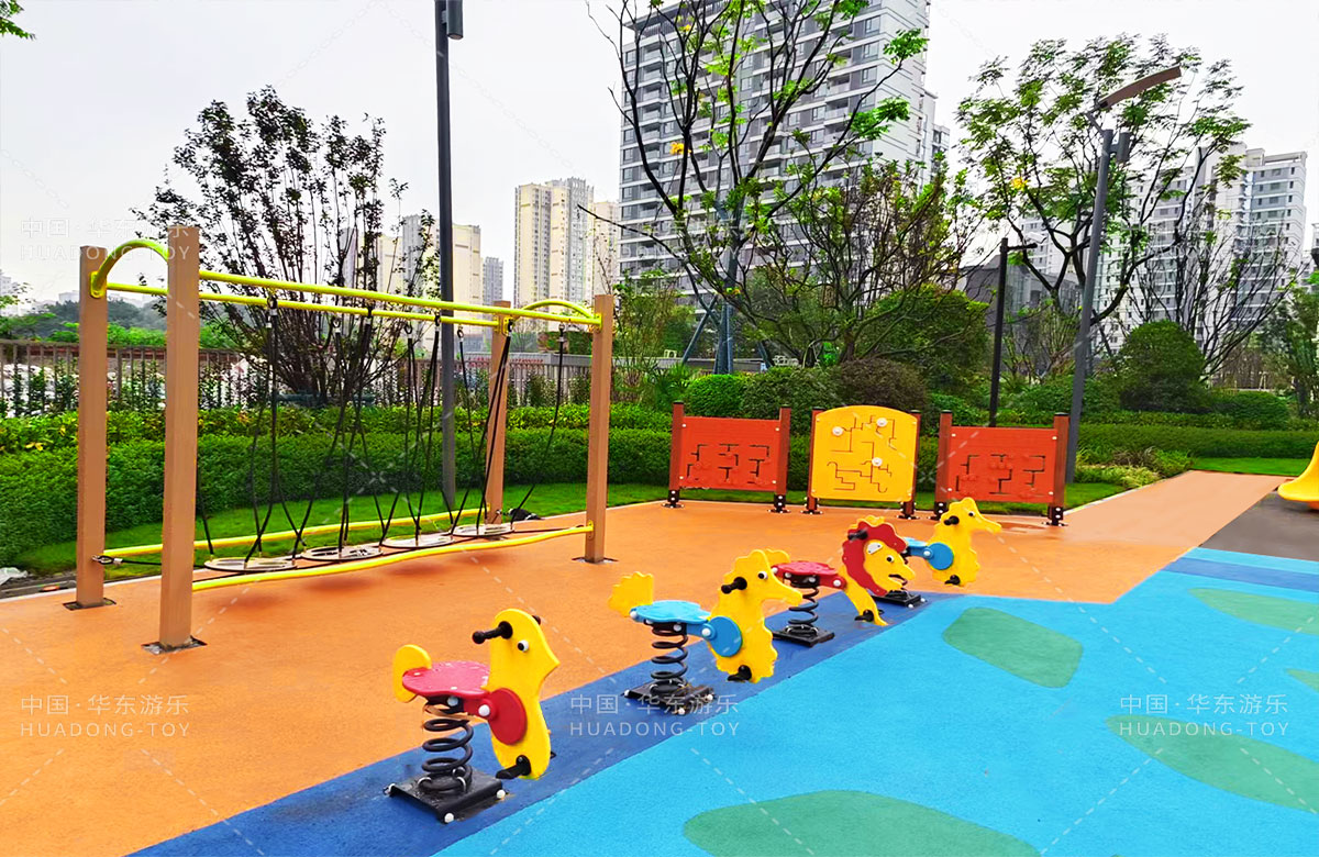 四川省成都市新城林屿溪选用的是leyu乐鱼游乐自主研发和设计的非标定制系列的游乐设备,为了更多让小朋友们有一个玩耍的场地,整个游乐场分别设计了儿童摇摇乐、儿童秋千、成人健身器、趣味迷宫、平衡吊桥、旋转椅、象鼻组合滑梯等游乐设备。