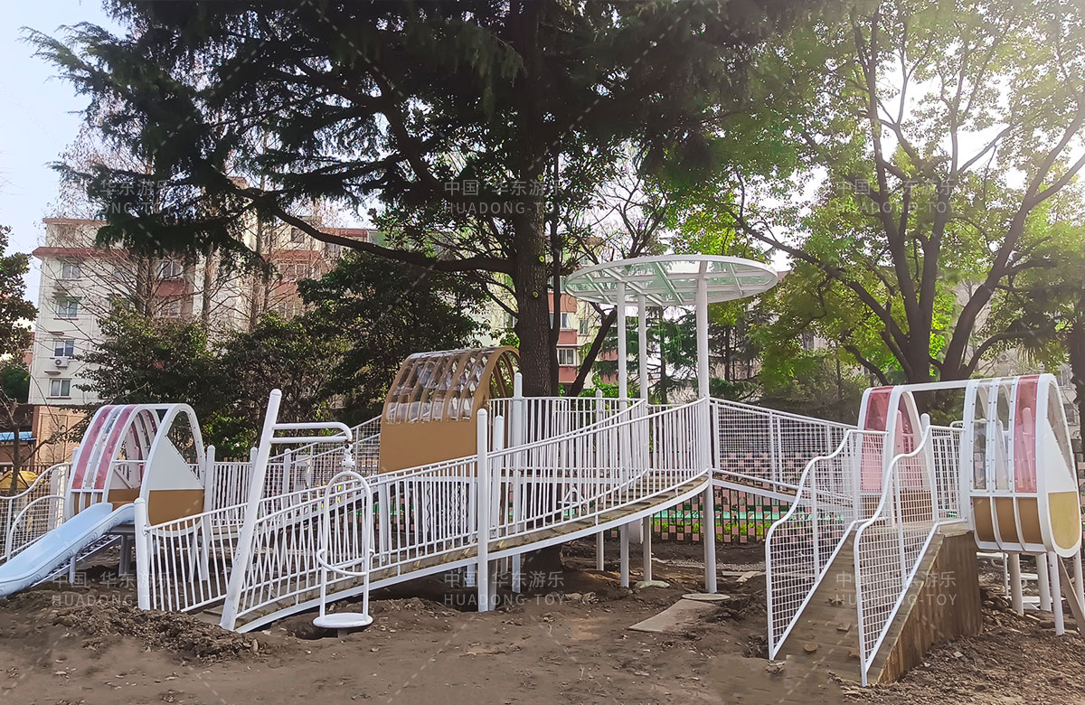 虹口区实验幼儿园简介创建于1993年9月。1994年定为一级一类幼儿园。儿园具有现代化的设施和美丽童趣的园舍。总占地面积4800多平方米。建设面积3000多㎡。绿化面积1800多㎡。 此次幼儿园游乐项目选择的是leyu乐鱼游乐自主研发和设计的一款综合性木质系列非标定制产品,不仅功能齐全,主体性也非常的适合幼儿园的场景设置。