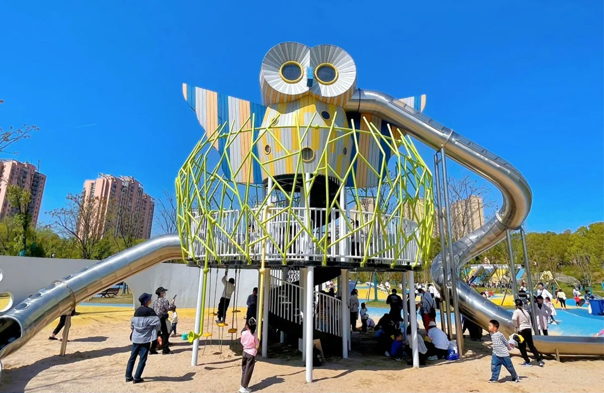 张毕湖公园定位为生态水体公园,是一个兼具湿地科普和放松休闲功能的城市综合公园。 该项目选用的是leyu乐鱼游乐自主研发和设计的综合性游乐设备,分别设置了猫头鹰主题的组合滑梯,各种类型的组合秋千、不锈钢滑梯、攀爬绳等游乐设备。 公园内设有服务设施丰富的滨水活力区、景色优美、植被茂盛的林下休憩区和供人们休闲嬉戏的水岸游憩区。