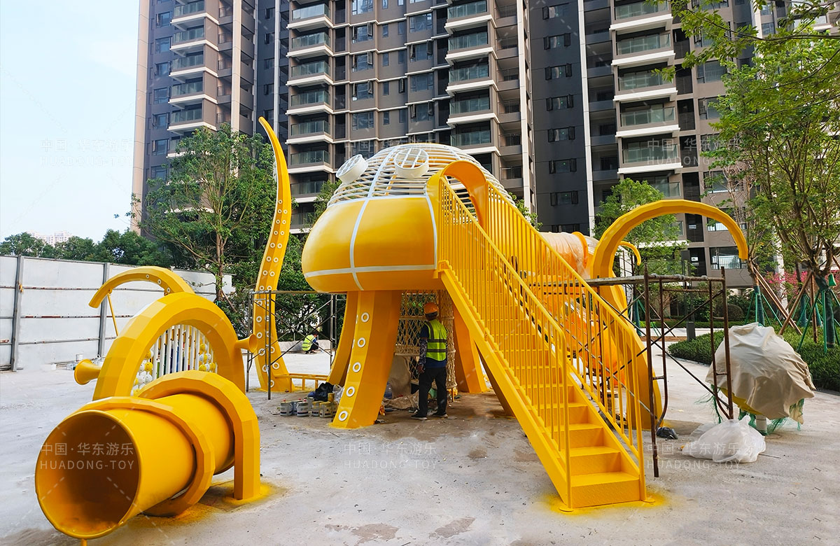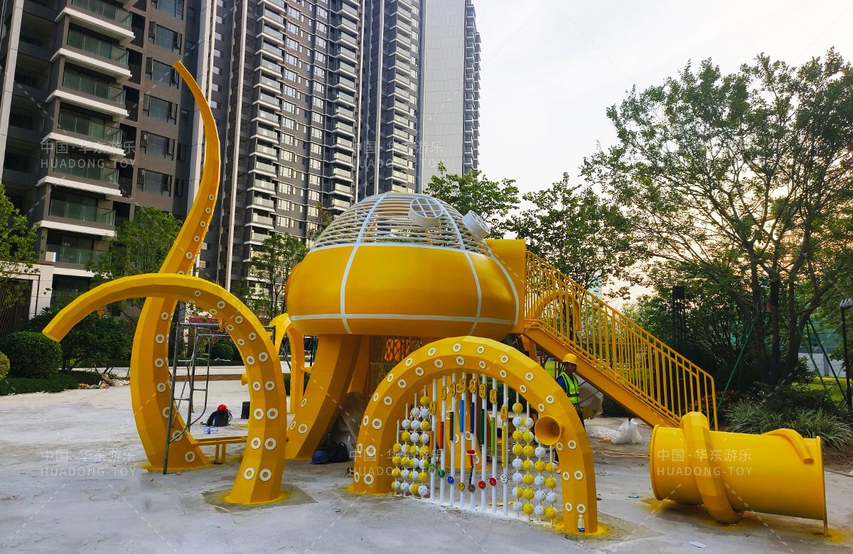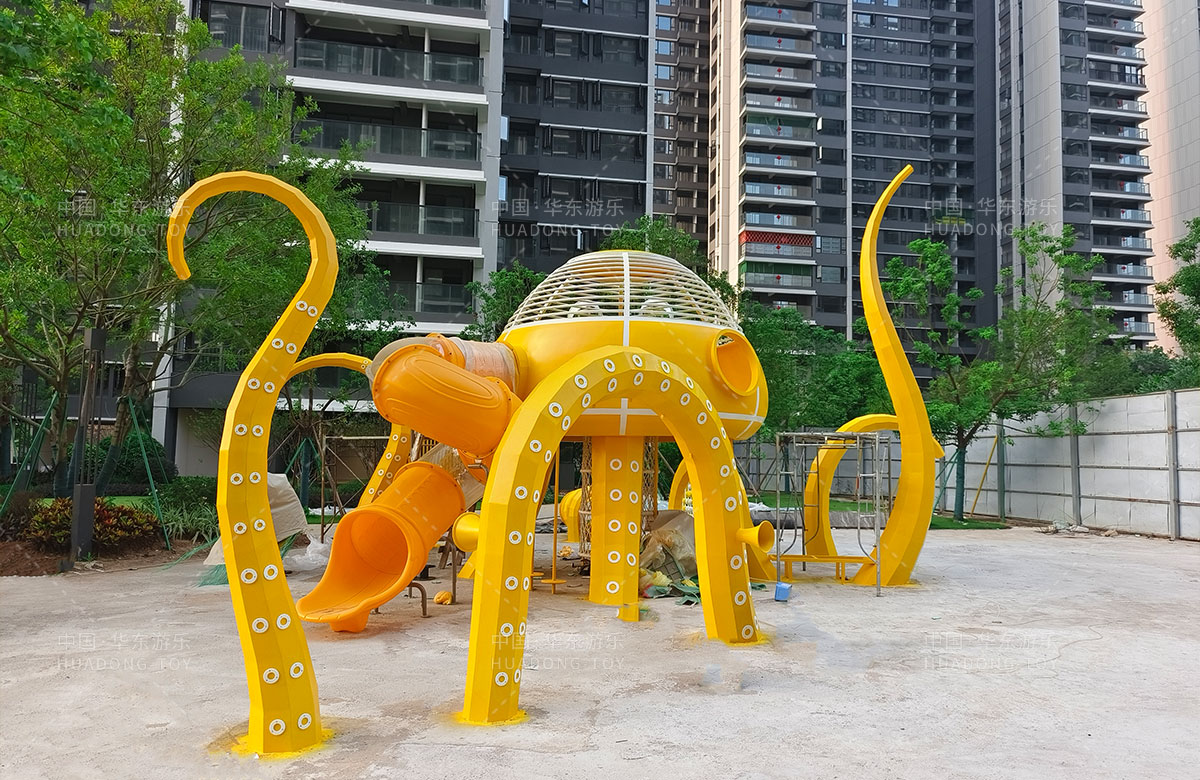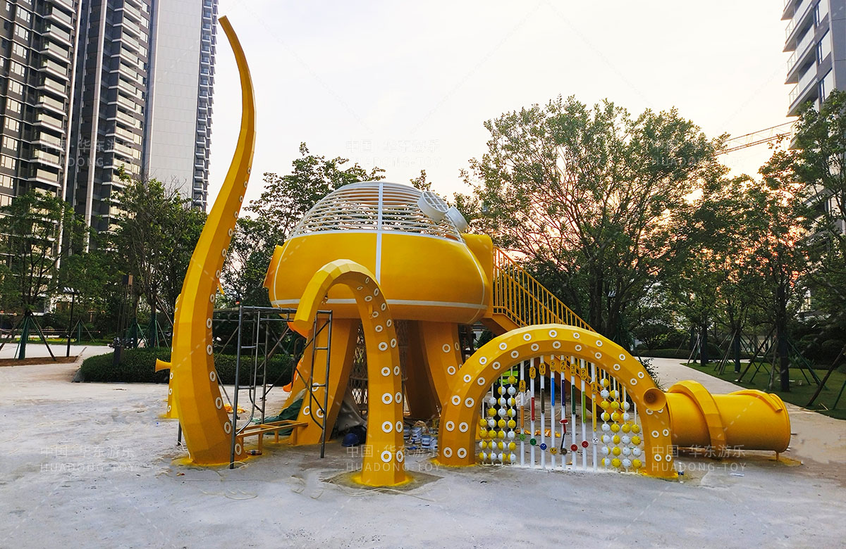 中海地产汕头阅江府选用的是leyu乐鱼游乐自主研发和设计的以章鱼为主题而设计的非标定制的章鱼主题综合游乐园,整个游乐园用一个大型的章鱼设备为主题,设计了集钻洞、攀爬网、滑梯、打击乐器等功能为一体的综合性游乐设备,为生活在当地的人群提供了一个休息娱乐的场所,也为小朋友们的健康成长提供了保障。