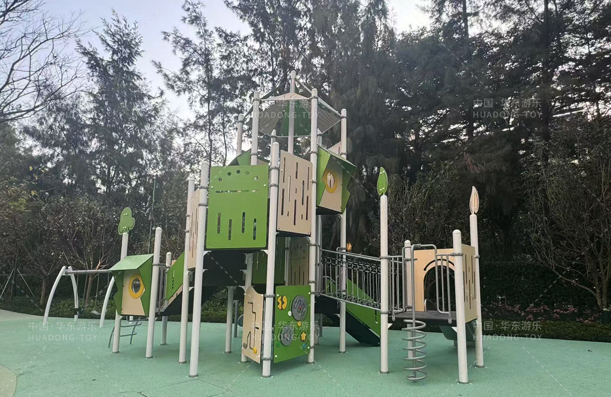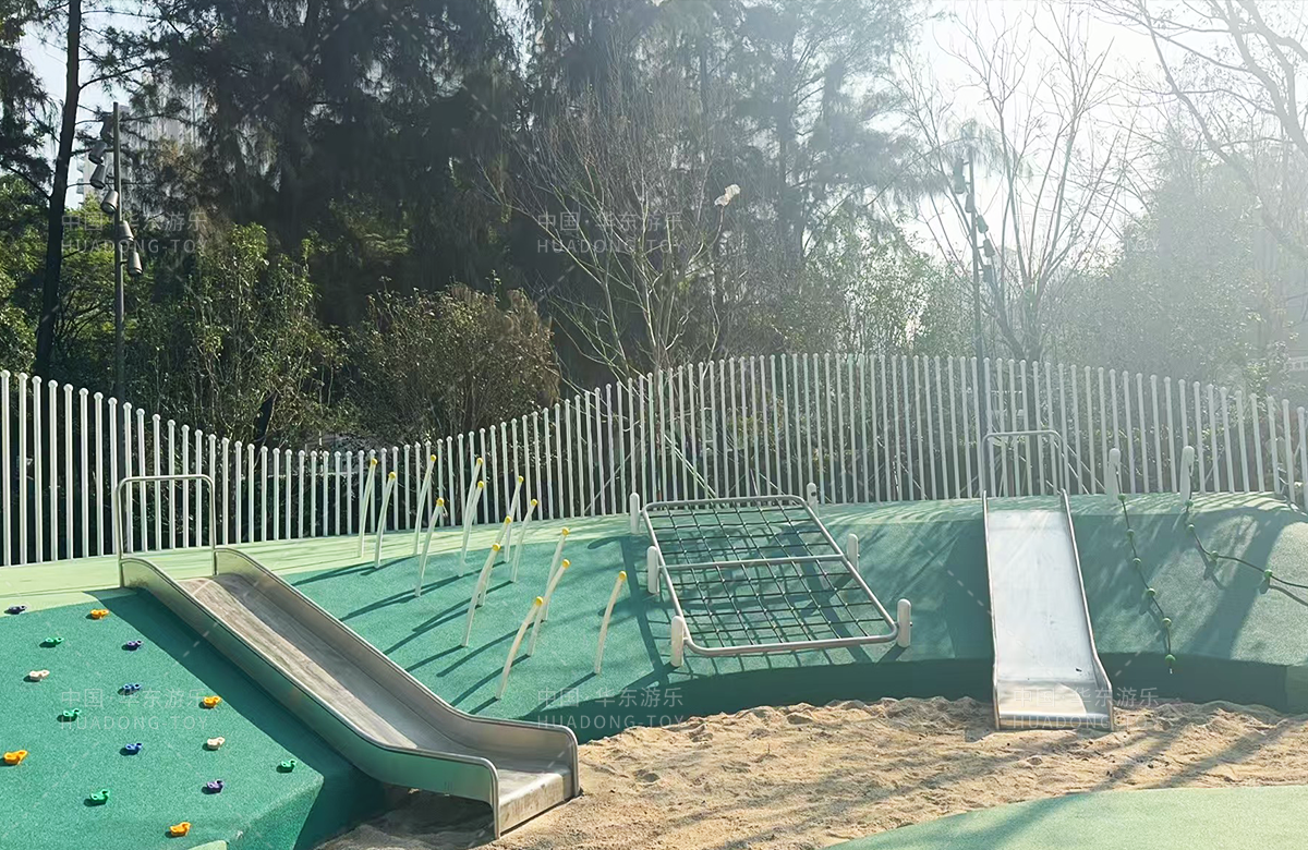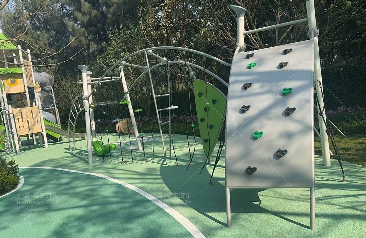 • 为了更好的为生活在该小区的人们提供更好的生活服务,该小区专门修建了一个综合性的游乐园,整个游乐园分别设置了攀爬网、成人健身器、孩童多功能攀爬架、组合滑梯、地形攀爬等功能的游乐设备,不仅仅丰富了小区的生活环境,也为当地的人们提供了休闲、娱乐、健身、遛娃的场所,大大的提高了人们的生活质量和幸福指数。